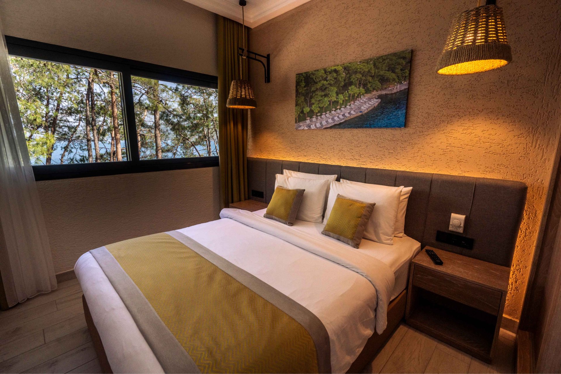 Superior Family Rooms are located in the garden area. The rooms consist of two separate bedrooms and one living room (one bedroom with a double bed and the other with twin beds). All rooms feature a bathroom with shower and a spacious balcony or terrace. Most rooms offer sea views, while the remaining rooms overlook the garden or forest. These rooms are ideal for large families.
