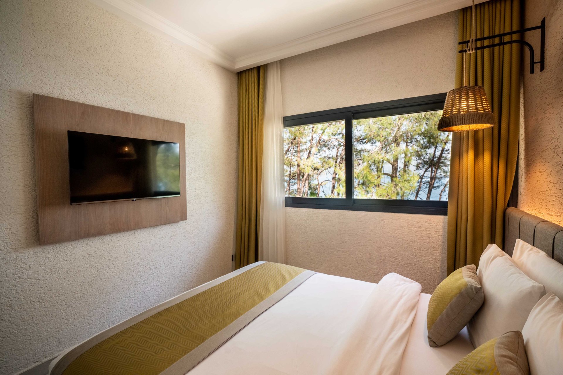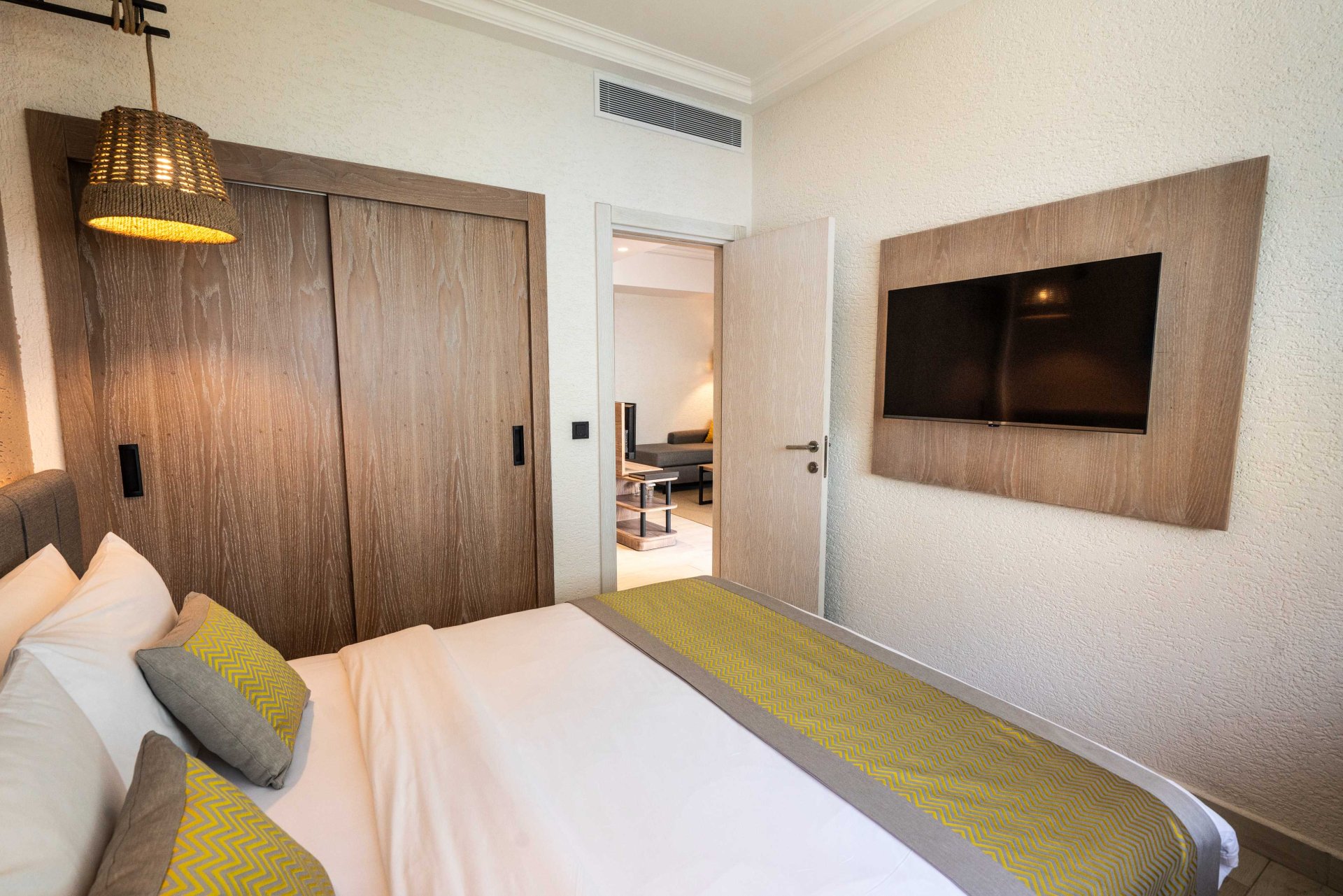Superior Family Rooms are located in the garden area. The rooms consist of two separate bedrooms and one living room (one bedroom with a double bed and the other with twin beds). All rooms feature a bathroom with shower and a spacious balcony or terrace. Most rooms offer sea views, while the remaining rooms overlook the garden or forest. These rooms are ideal for large families.